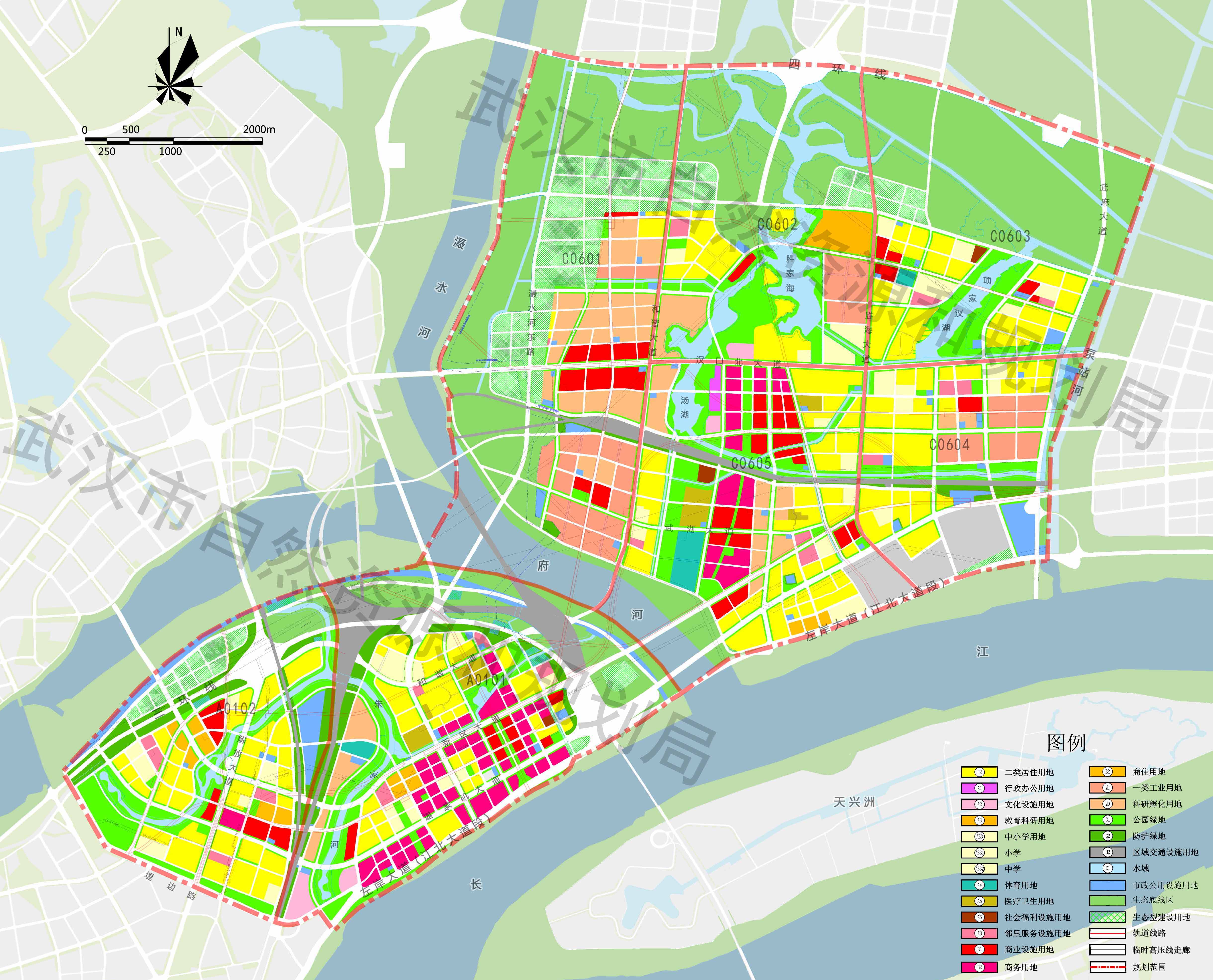 控规共包含7片编制单元,以府河为界,将江岸区(主城区)划分为A0101和A0102两个编制单元,黄陂区(新城区)划分为C0601、C0602、C0603、C0604、C0605五个编制单元,对编制单元主导功能、“五线”控制、强度及高度控制、设施用地等要素控制,增加特色管控要求,包括弹性控制、混合用地、城市设计、地下空间等方面,作为规划建设的管理依据。
