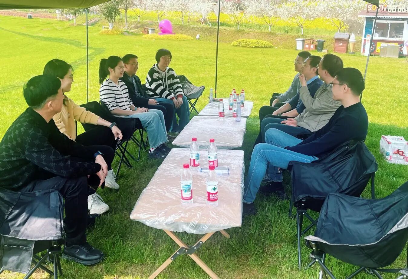 实地参观后,小组成员们在项目现场,结合各自专业背景和工作实践,从地质灾害防治、碳汇和碳交易、“三资”改革、引入小微湿地、创新公众参与方式等多方面开展座谈交流,共同分享本次调研灵山矿区生态修复项目的感悟与思考。最后,资源保护与生态修复小组导师作总结发言,要求学员们强化系统观念、底线思维,将本次调研所学知识和理念,深度融入到国土空间规划、资源保护、生态修复等工作实际中。